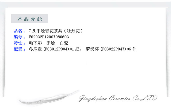 7頭手繪青花茶具(牡丹花)
