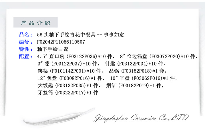 56頭釉下手繪青花事事如意